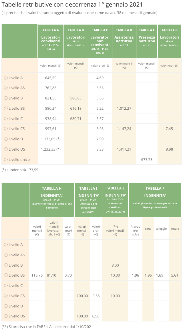 (**) Si precisa che la TABELLA L decorre dal 1/10/2021
